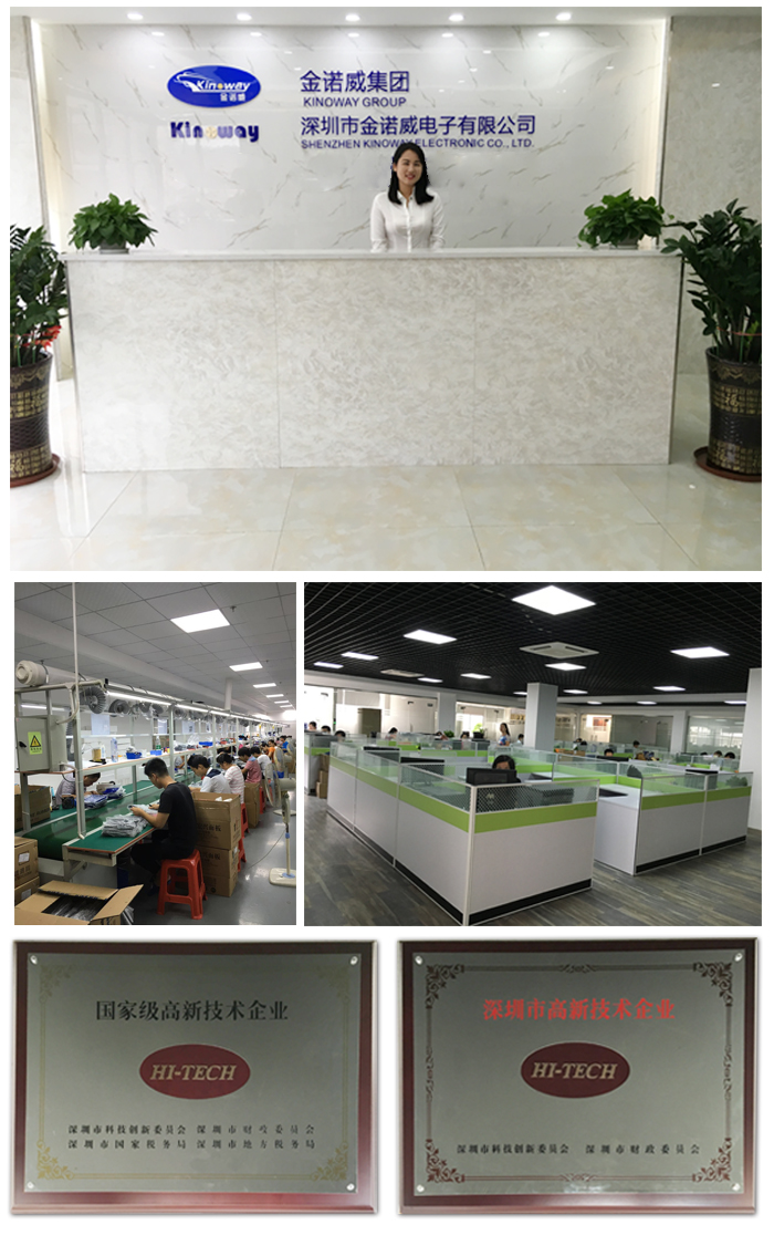 Operating since 2003 Shenzhen Kinoway Electronic Co. Ltd was established in 2003, which is the subsidiary manufacturer of Kinoway Group with 14 years’ experience, and 1,000 workers. We have our own R&D department and 10,000-square-meter plant area. High-end Equipment to Process Your Order Kinoway is a national high-tech enterprise with advanced production equipment, including the world's leading automatic SMT production lines and high-end testing equipment, a highly qualified management team, high-level technical development staff and a large number of well-trained workers. Thus, we passed BSCI and ISO 9001:2000 from SGS, and our products passed CE, FCC, RoHS and 3C certification. Wide Product Range to Choose From We have five factories with large product lines, such electric hoverboards/scooters, electric skateboards, Bluetooth speakers, digital photo frames/albums, video brochures, tablets (MID), VR (virtual reality) headsets, eBook readers, portable DVDs, power banks and more.